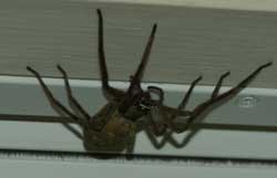雨戸を閉めようと・・・まぁ、窓を開けて雨戸を閉めんとすると雨戸の隙間にいたんだろうね、でっかいクモが部屋の中に侵入してきた・・・というか僕の手をかすめていったんだ。そりゃあでかいクモでさ足をのばすと10センチ弱くらいあろうかというクモだ。そんなのが手に触れたんだからビックリさ。きゃぁみたいな感じよ。