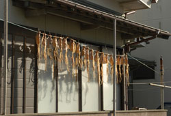 ひものがかかっている軒先。こういう"らしさ"が出ている光景ってとていいいよね。千葉県銚子市外川町にて