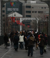 なるほど、このワールドポーターズには混雑しがちなマイカルのシネマコンプレックスが入っているが・・・それにしても、平日の出勤時間帯とあまり変わらない休日のこの時間にかように黙々とワールドポーターズに向かっている人並みを見るにつけ、この人達も平日はどこかのオフィス街とか学校とかに通っているのだろうが、休日はワールドポーターズに出勤しているような感じだなぁと思ってみる。