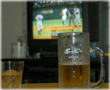 [ ビール片手に野球をテレビで・・・ ]