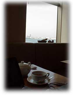 海を見ながらティータイム。パソコンは欠かせない。