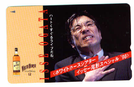 まあ、ちょっと前なんですけど・・・12月4日にイッセー尾形の一人芝居見に行ったんですね、ホワイトホースシアター イッセー尾形スペシャル’98というものだったんですが・・・.ええ、すごく面白かったんですが、しかもね、そこで抽選で景品が当たったんですよ・・・オリジナルテレカとかホワイトホース(ウイスキーですね)のオリジナルグラス、そのウイスキーの小ビンとかついた・・・B賞でした。