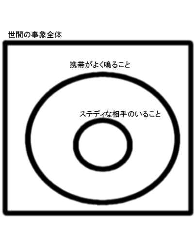 論理学的・数学的に小難しく言えばさ、携帯がよく鳴ることはステディな相手を持つことに対する十分条件ではないけど必要条件ではあると言うこと。
